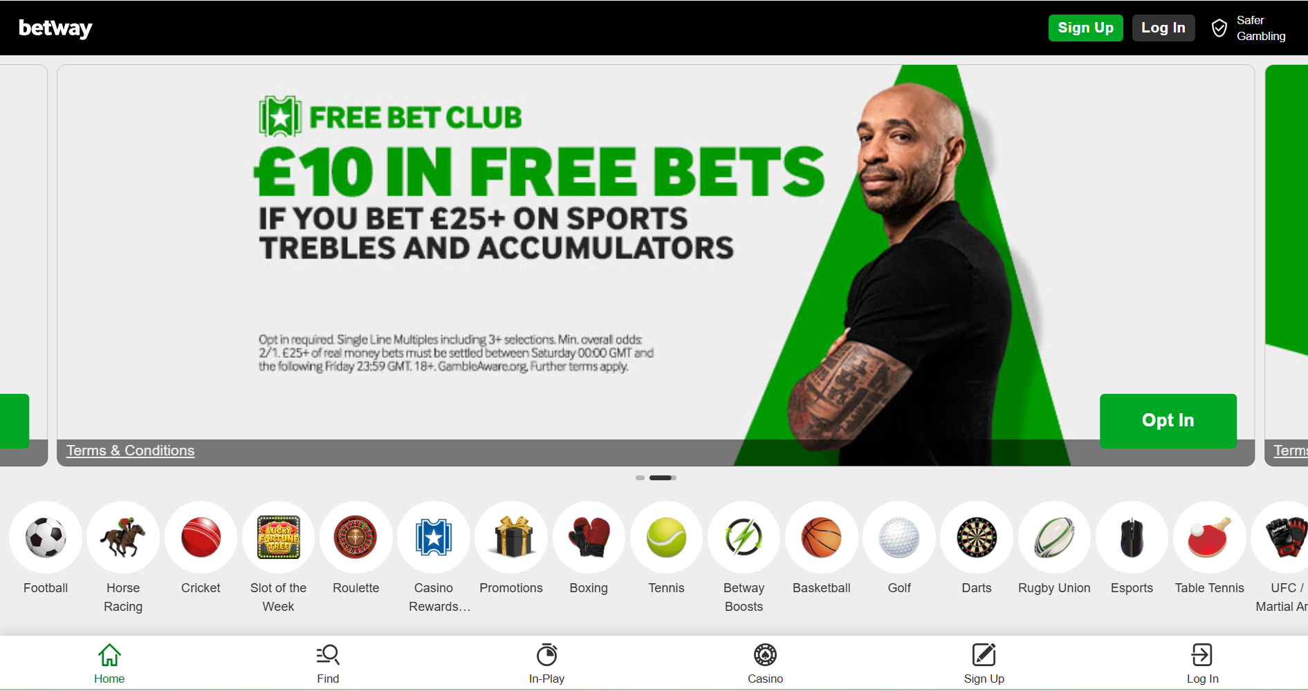 Among the finest Non Gamstop Casinos and sportsbooks available, Betway distinguishes itself through an exceptionally broad selection of sports markets and odds, encompassing football, horse racing, tennis, cricket, basketball, esports, and beyond. Major tournaments such as the Premier League and Grand National receive extensive coverage, with hundreds of wagering possibilities ranging from straightforward match outcomes to granular player proposition bets. Standout features include Bet Builders, cash-out functionality across numerous markets, accumulator enhancements, and the Free Bet Club — a loyalty mechanism allowing regular members to collect weekly free bets by placing eligible multiple wagers. New UK customers are typically welcomed with a matched free bet promotion.